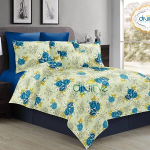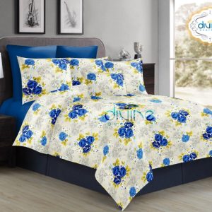 Divine Overseas 100% Pure Cotton Designer Printed Double Bed Sheet Set (Fragrance) 1 Bed Sheet +2 Pillow Cover (Double, Royal Blue Rose)