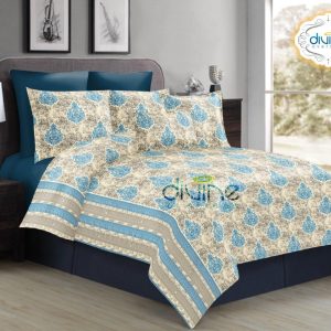 Divine Overseas 100% Pure Cotton Designer Printed Double Bed Sheet Set (Fragrance) 1 Bed Sheet +2 Pillow Cover (Double, Sky Blue Heritage)